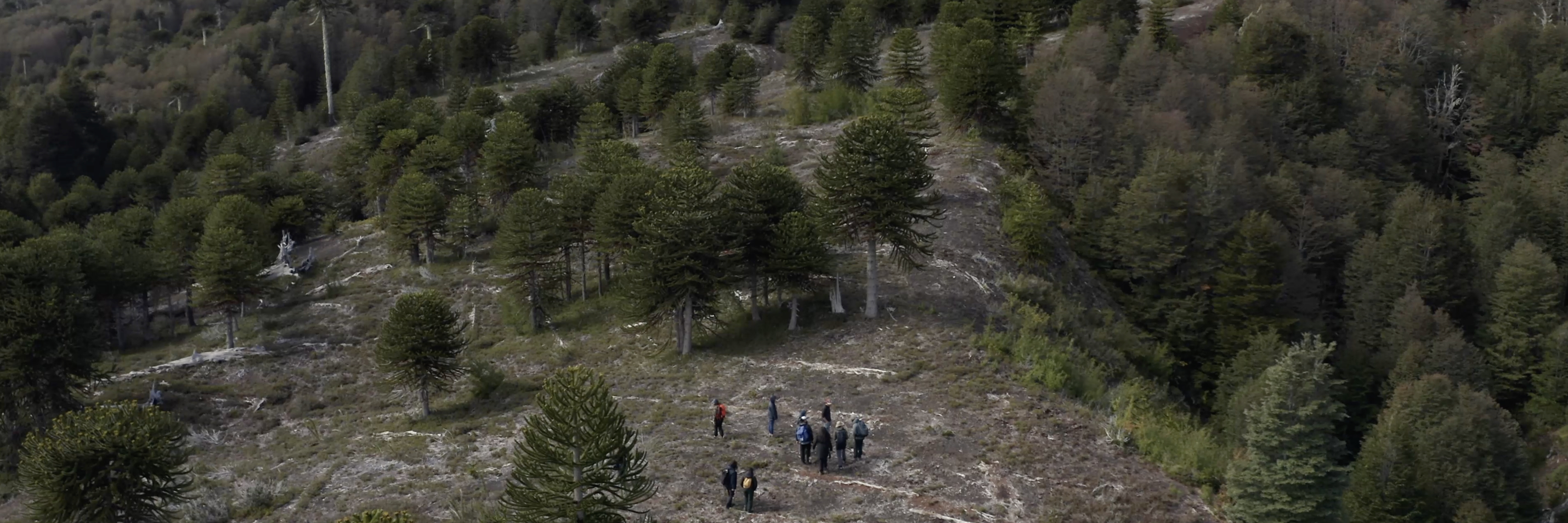 एक ड्रोन अपने घूमते हुए प्रोपेलर द्वारा हवा में स्थिर होकर मंडराता रहता है। यह बर्फ से ढके चिली पर्वतों के ऊपर लटका हुआ है। राख से ढके ज्वालामुखी के जमे हुए शिखर के सामने काले पेड़ ऊंचे खड़े हैं। इस मौसम में जंगल नंगे सर्दियों के पेड़ों से घने होते हैं। जंग लगे रंग की शाखाएं गहरे हरे रंग के बंदर पहेली वृक्षों, या अराकेरियस के दांतेदार मूर्तिकला रूपों के साथ प्रतिच्छेद करती हैं। ठंडा, चमकीला आसमान ऊपर की ओर खुला हुआ है।